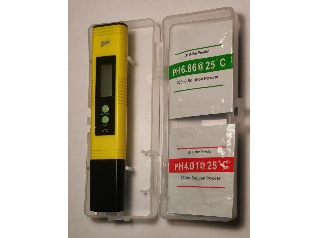 Pro kalibraci se použijí přiložené kalibrační prášky pH 4,01 a 6,86.